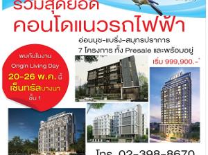 เตรียมพบกับ 7 เรื่องราวดีๆ กับ 7 สุดยอดโครงการ ของออริจิ้น พร็อพเพอร์ตี้ ในงาน ORIGIN LIVING DAY 20-26 พฤษภาคมนี้ พบกับบูธสไตล์ Chic และคอนโดหรู 7 โครงการใหม่สุดคุ้มในแนวรถไฟฟ้า ตลอดทั้งย่านอ่อนนุช-แบริ่ง-สมุทรปราการ ราคาเริ่มต้นเพียง 999,900 บาทเท่านั้น และโปรโมชั่นจัดหนักเช่นเคย สอบถามเพิ่มเติม โทร. 02-7444270, 02-7444430, 02-3988669 พบกันที่โถงชั้น 1 เซ็นทรัลบางนา