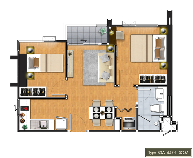 | ขนาดห้อง | 44.0 ตารางเมตร |