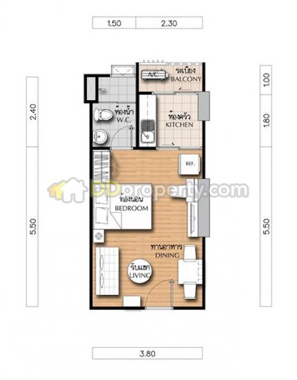 ขนาดพื้นที่ 38.0 ตารางเมตร