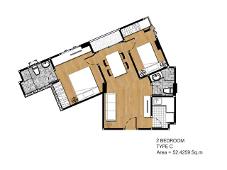 2. ห้องมุมแบบสองห้องนอน สองห้องน้ำ หนึ่งห้องครัว (52.5 ตารางเมตร) Type C ชั้น 8 อาคารเอ (ตึกหน้าสุดใกล้ถนนเสรีไทย)