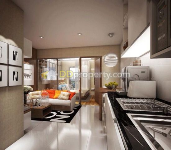 ขายราคาพิเศษ คอนโด Noble Revent ห้องบิ้วอินเคาน์เตอร์ครัว และตู้ชั้นวางในโซนนั่งเล่น ตอบโจทย์ทุกสไตล์