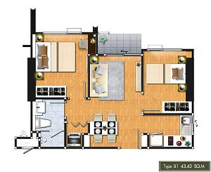 | ขนาดห้อง | 43.0 ตารางเมตร |