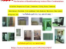 At 3rd floor ,Property size 52 sqm. , 2 bedrooms, 1 Living Room, 1 bathroom: Bed, Dresser, Wardrobe, 3 Air conditioner, Sofa, Bookcase, Microwave, Shoe cabinet, Refrigerator, Sink