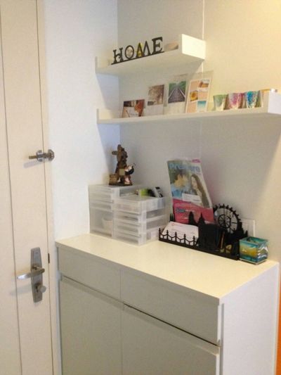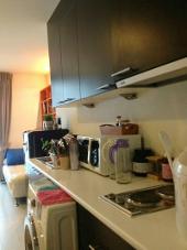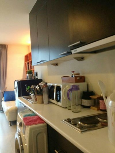 - ครัวแบบ built-in kitchen (เครื่องดูดควัน, ซิงค์ล้างจาน, ไมโครเวฟ, เตาไฟฟ้า, และตู้เย็น) ,