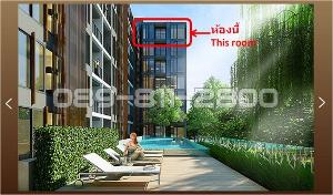 ห้องขนาด 32 ตารางเมตร 1 ห้องนอน 1 ห้องน้ำ 1 ห้องครัว 1 ห้องนั่งเล่น ระเบียง ชั้น 8 (ชั้นบนสุด) วิวสระว่ายน้ำ