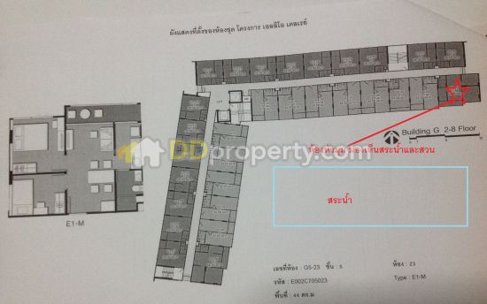 ขายดาวน์ ห้องหัวมุมชั้น 5 วิวสระว่ายน้ำ 2 ห้องนอน ขนาด 44 ตารางเมตร คอนโด Elio Delray - คอนโด ขาย