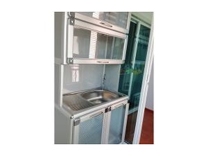 -ห้องครัวแยกเป็นสัดส่วนอยู่ที่ระเบียง ระเบียงมีปลั๊กสำหรับเครื่องซักผ้า