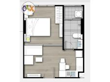 ห้องขนาดพิเศษ 49 ตรม. ชั้น 6 ( ไม่มีตึกบัง) 1ห้องนอน 1 ห้องน้ำ 1 ครัว 1 นั่งเล่น และระเบียงห้องนอน