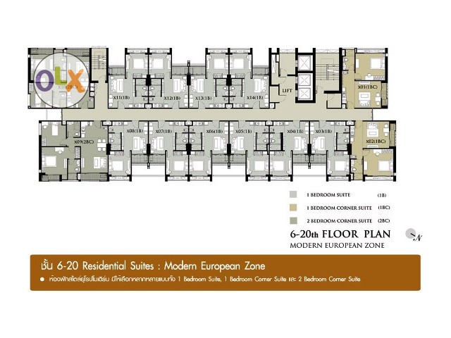 ห้อง One Bedroom (1ห้องนอน) ชั้น 15 พื้นที่ 35 ตารางเมตร