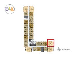 แบบห้อง C ห้องหัวมุม ชั้น 18 ขนาด 45 ตรม โครงการสูง 25 ชั้น