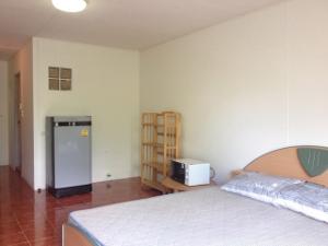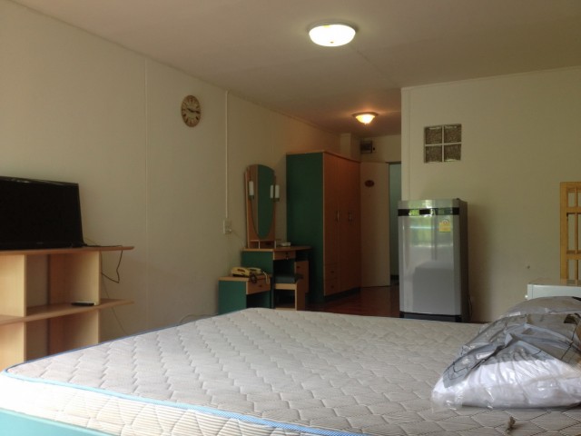 เตียงนอน, ตู้เสื้อผ้า, โต๊ะเครื่องแป้ง, ทีวี, ตู้เย็น, โต๊ะวางทีวี, ชั้นวางของ, ไมโครเวฟ, เครื่องทำน้ำอุ่น