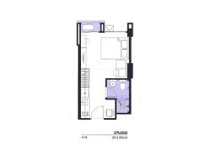 - ขนาด 22 ตรม. Studio 1 ห้องใหญ่ 1 ห้องน้ำ ครัวเล็กบิ้วอิน (มี 2ห้องให้เลือก)
