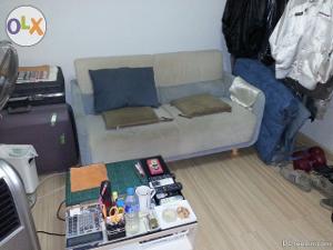 ห้องอาบน้ำเป็นตู้อาบน้ำ พร้อมเครื่องทำน้ำอุ่น ห้องรับแขกมีโซฟาสวยงาม