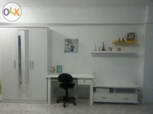 ห้องปรับปรุงสวยงามพื้นปูกระเบื้องและมีเฟอร์นิเจอร์ใหม่ทั้งหมด (ตู้เสื้อผ้า เตียงนอนและที่นอน 5 ฟุต โต๊ะหัวเตียง โต๊ะทำงาน เก้าอี้ โต๊ะเครื่องแป้ง แท่นวางทีวี โซฟา โต๊ะกลาง )