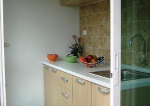 *แยกห้องครัวเป็นสัดส่วน ชุดครัว BUILT-IN อยู่ที่ระเบียง ในครัวมีตู้แขวน 1 ชุดและชั้นวางของ ตู้ใต้ SINK มีบานปิด 1 ชุด , ปลั๊กที่ระเบียงสำหรับเครื่องซักผ้าสามารถวางเครื่องซักผ้าส่วนตัวได้