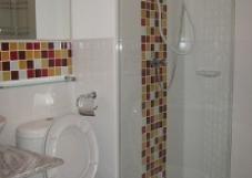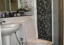 *พื้นห้องปูแกรนิโตแผ่นใหญ ห้องอาบน้ำแถมกระจกกั้นแยกส่วนเปียกแห้ง+สุขภัณฑ์ /เครื่องทำน้ำอุ่น, ราวแขวนผ้า 2 ชั้น ,ชั้นกระจกวางของ, ชั้นเข้ามุมใส่ของในห้องน้ำ, ที่แขวนผ้าเช็ดมือ