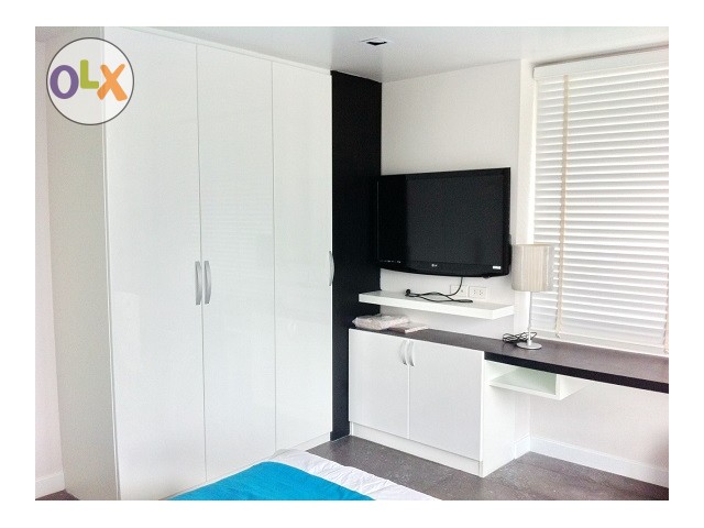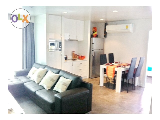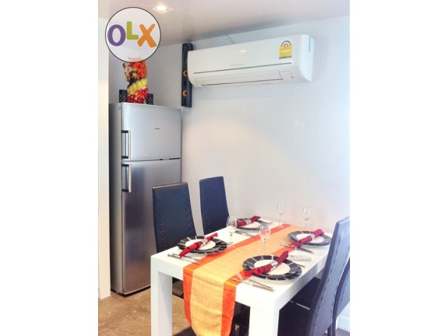 2 bedrooms 1 bathroom on 32nd floor. Newly decorated with a built-in furniture and this unit is fully furnished come with a nice bathtub, new washing machine, spacious balcony which you can see the city view, newly built-in closet and 1 king bed size & 1 queen bed size in the bedroom. This room is decorated in a modern style and provided 2 TV LED in living room & master bedroom. In the living room, there is also a home theater + DVD player. At Asoke Place Condo has provided a nice gym, a swimming pool, sauna on the UL floor, a reception on the 1st floor, keycard entrance and 24 hours security guard.