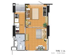 -ห้องชุด ( 1 ห้องนอน, ห้องรับแขก, ห้องครัว, ห้องน้ำ )