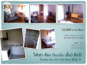 ให้เช่า ห้องสตูดิโอขนาด 32 ตรม. ชั้น9 ตึกB ตกแต่งสวย เครื่องใช้ไฟฟ้าครบ ทีวี ตู้เย็น ไมโครเวฟ พร้อมที่จอดรถ