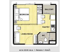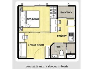 ห้องขนาด 22.05 ตร.ม. 1 ห้องนอน 1 ห้องน้ำ