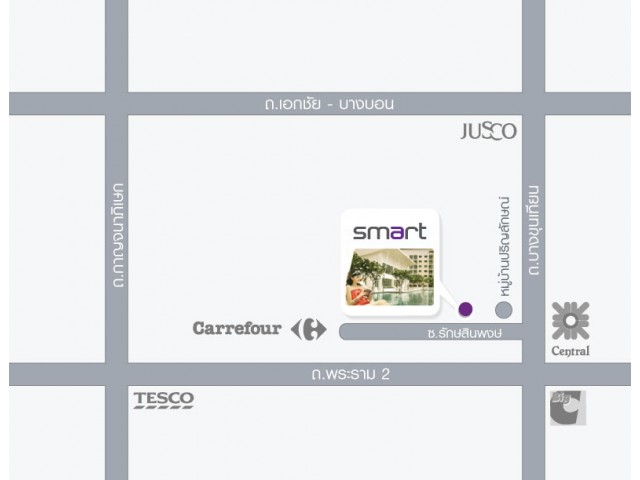 • ใกล้ห้างสรรพสินค้า Central พระราม2, Big C (2 สาขา), Lotus, Home Pro