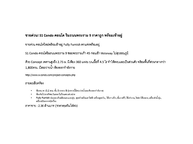 ขายด่วน! S1 Condo คอนโด ริมถนนพระราม 9 ราคาถูก พร้อมเข้าอยู่