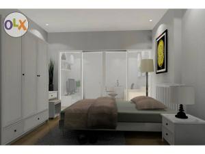 ภายในห้องมีชุดครัว กระจกกั้นอาบน้ำบานสไลด์ กระจกกั้นห้องนอนบานสไลด์