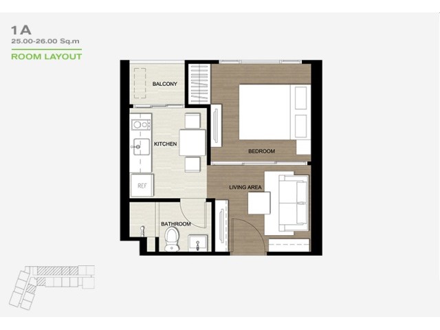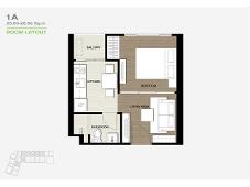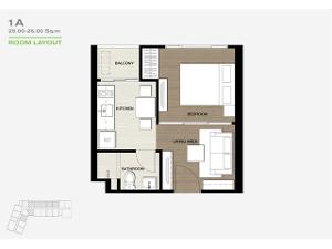 แบบห้อง 1A ห้อง 1 ห้องนอน ขนาด 25.00 ตร.ม.