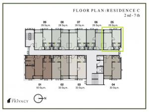 ตำแหน่ง – ขนาดห้อง : อาคาร C ชั้น 2 ห้อง C205 (ห้องมุม) ขนาด 28 ตร.ม.