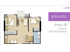 - แบบ 2 ห้องนอน ชั้น 23 ขนาด 44 ตรม.