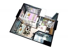 ห้อง ขนาด 22.05 ตร.ม 1 ห้องนอน 1 ห้องน้ำ