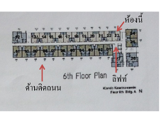 แบบห้องชุด : 24 ตร.ม. อยู่บนชั้นที่ 6, 1 ห้องนอน 1 ห้องน้ำ เฟอร์นิเจอร์ครบชุด พร้อมเครื่องใช้ไฟฟ้า เช่น ตู้เย็น ทีวี ไมโครเวฟ