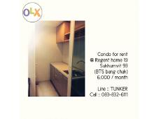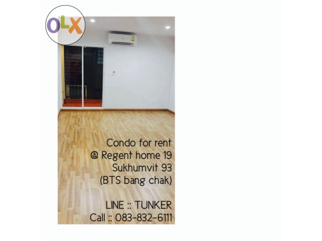 ให้เช่าห้องคอนโด RegentHome19 สุขุมวิท 93 ราคา 9000ต่อเดือน ห่างจากรถไฟฟ้า BTS บางจาก 600 เมตร
