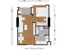 ขนาด 32 ตรม. หนึ่งห้องน้ำ หนึ่งครัว หนึ่งห้องนอน