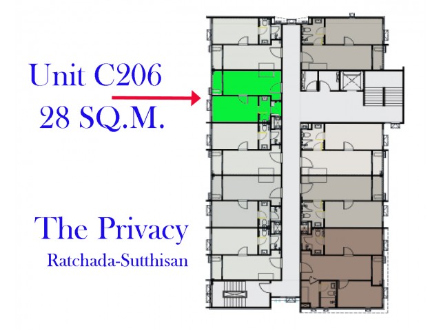 ขายดาวน์ 1 ห้องนอน 1 ห้องน้ำ 1 ห้องครัว ขนาด 28 ตร.ม. อาคาร C ชั้น 2 Unit C206