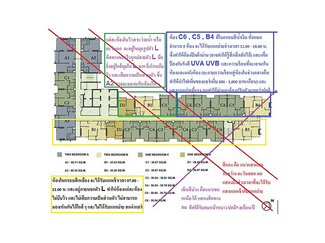ระเบียงหันไปทิศทิศตะวันออกเฉียงใต้ โดย (ไม่เห็นสระว่ายน้ำ / แดดเช้า / เป็นส่วนต้วสูง / ไม่อยู่ในมุม L )