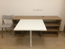 เฟอร์นิเจอร์ : ตู้เสื้อผ้า ตู้เย็น โต๊ะทานข้าวพร้อมเก้าอี้ทานข้าว โซฟาขนาด 2 ที่นั่ง เคาเตอร์เตรียมอาหาร แอร์คอนดิชั่นเนอร์ ผ้าม่าน ชั้นวางทีวี เตียงนอน 5 ฟุตและฟูกที่นอน โต๊ะเอนกประสงค์ 1 ตัว