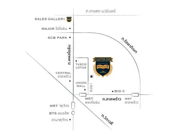 - ใกล้ศูนย์การค้า เซ็นทรัลลาดพร้าว, ยูเนียนมอล์, คาร์ฟูร์, Lotus, สวนจตุจักร และ Major รัชโยธิน