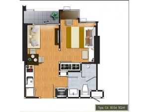 1 ห้องนอน ขนาด 30.54 ตร.ม. แบบห้อง C6