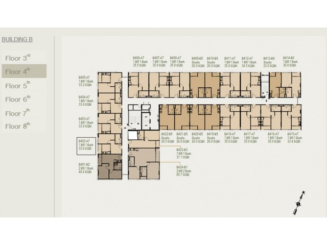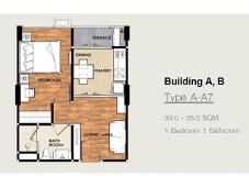 ห้องแบบ 1 bedroom ขนาด 33.6 ตารางเมตร ชั้น 4 อาคาร B (เป็นอาคารที่มีสระว่ายน้ำ ฟิตเนส ห้องสตีมและที่จอดรถ)
