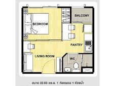 ห้องใหม่ มือ 1 ห้องกว้าง 22.05 ตร.ม. 1 นอน 1 น้ำและครัว พร้อมตรวจห้องเดือน ก.ค 57