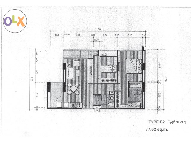 ชั้น 7 ห้องหมายเลข 709, พื้นที่ 77.62 ตารางเมตร