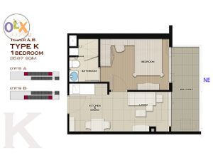 - ห้องชั้น6 อาคาร A ห้องแรก แบบห้อง K (เลขที่ห้อง 6A1K)