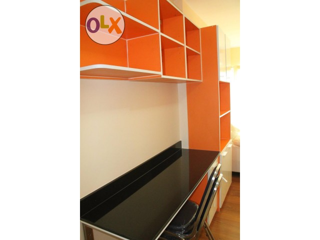 - ห้องนอนใหญ่ เตียงนอนพร้อมบิ้วหัวเตียง มีตู้เสื้อผ้าบิวท์อินตู้เครื่องแป้ง เตียง ชั้นวางทีวี