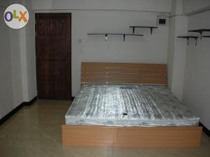 - ห้องขนาด 25 ตรม.พื้นกระเบื่อง ผนังวอลเปเปอร์ แอร์ ตู้เสื้อผ้า เตียงนอน ผ้าม่าน
