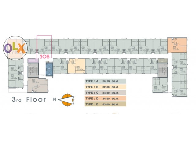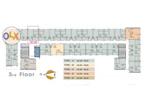 อาคาร A ชั้น 3 พื้นที่รวมระเบียง 26.5 ตรม. ห้องเปล่า พร้อมโอน
