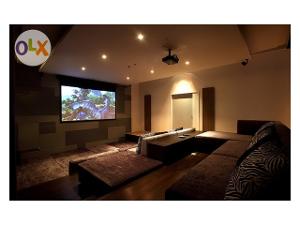 - ห้องดูหนังขนาดใหญ่ โซฟาแสนสบาย สามารถนำหนังมาเปิดเองได้
