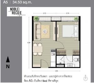 ขายคอนโด Noble Recole โนเบิล รีโคล 34.86 ตร.ม 6.79 ลบ.ทิศเหนือ วิวดี