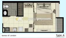 Sense of London ห้องชุดให้เช่า ใกล้รถไฟฟ้า BTS แบริ่ง ซอยสันติคาม4 ขนาดห้อง 28.78 ตร.ม