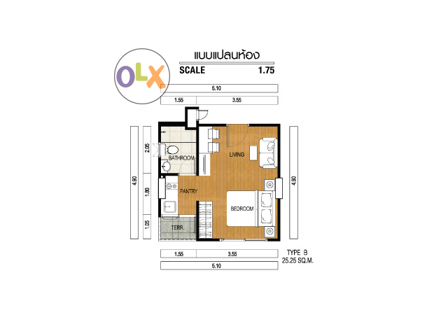 - เนื้อที่ : 25.25 ตารางเมตร
